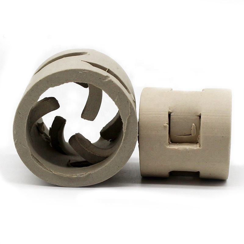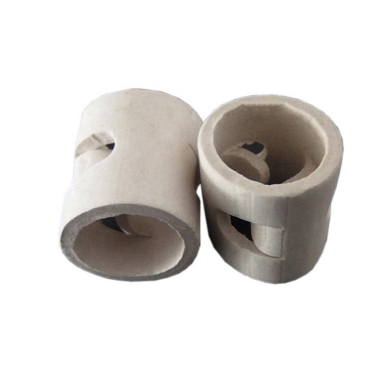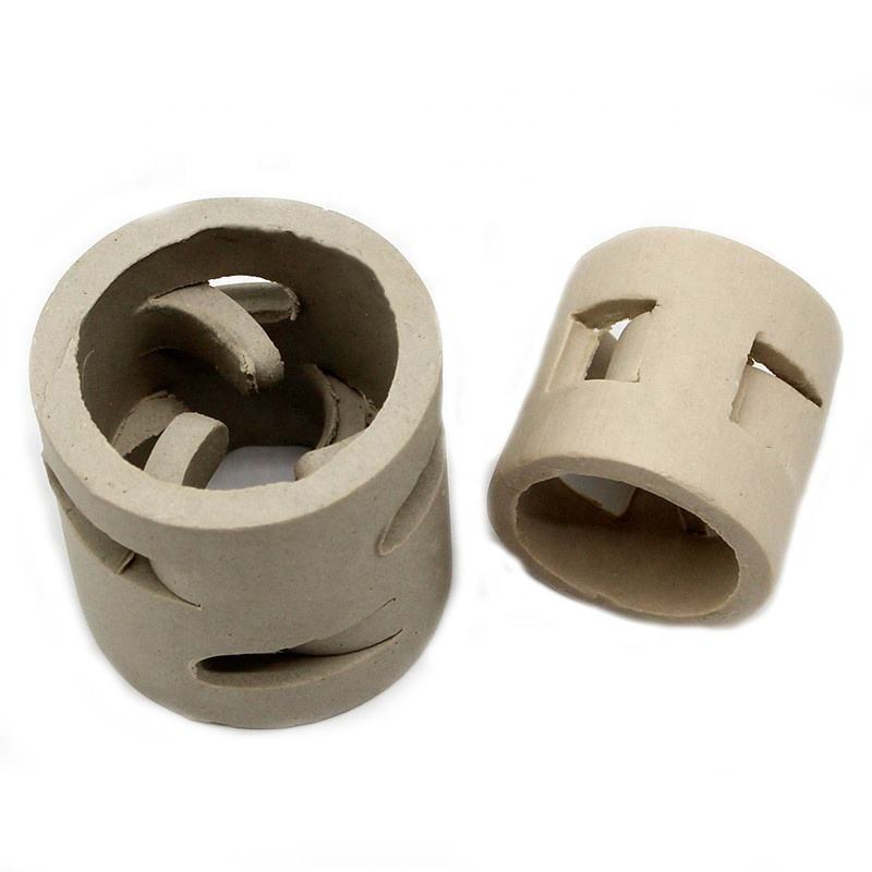 Ceramic Pall ring is a kind of ring filler with equal height and diameter. There are five tongue lobes in each layer of window hole. The inner bend of each tongue blade points to the center of the ring,and the positions of the upper and lower windows are opposite to each other.