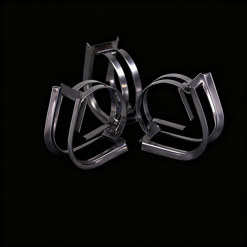 Metal Intalox Saddle was developed by the United States Norton, between the shape of its saddle-shaped ring and between, and the advantages of both. Intalox metal structure in the saddle-shaped packing ring based on the increase of the annular tendon, to avoid overlap and ensure a certain degree of strength and rigidity out of a number of small claws, an increase of gas-liquid agitation, enhanced mass transfer, thus produce a unique performance.