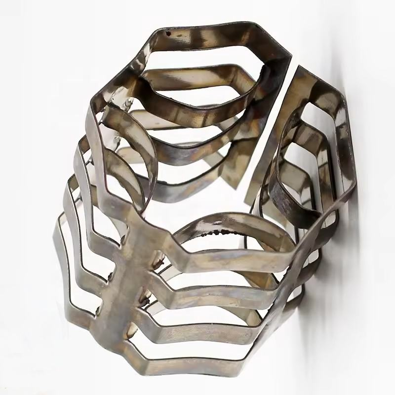 Metallic VSP ring, also called inner arc ring,very special ring, is made of carbon steel, stainless steel, titanium alloy, aluminum alloy, copper alloy and stainless steel materials. Metallic VSP rings has reasonable geometric symmetry, which the inner arc are folded evenly along the axial direction and replaced alternated arranged. This design contributes a continuous surface for extremely high void age and evenly distribution. Compared with pall ring, the fluxes are increased 15-30% and the pressure drop is reduced 20%–30%.