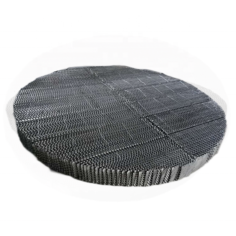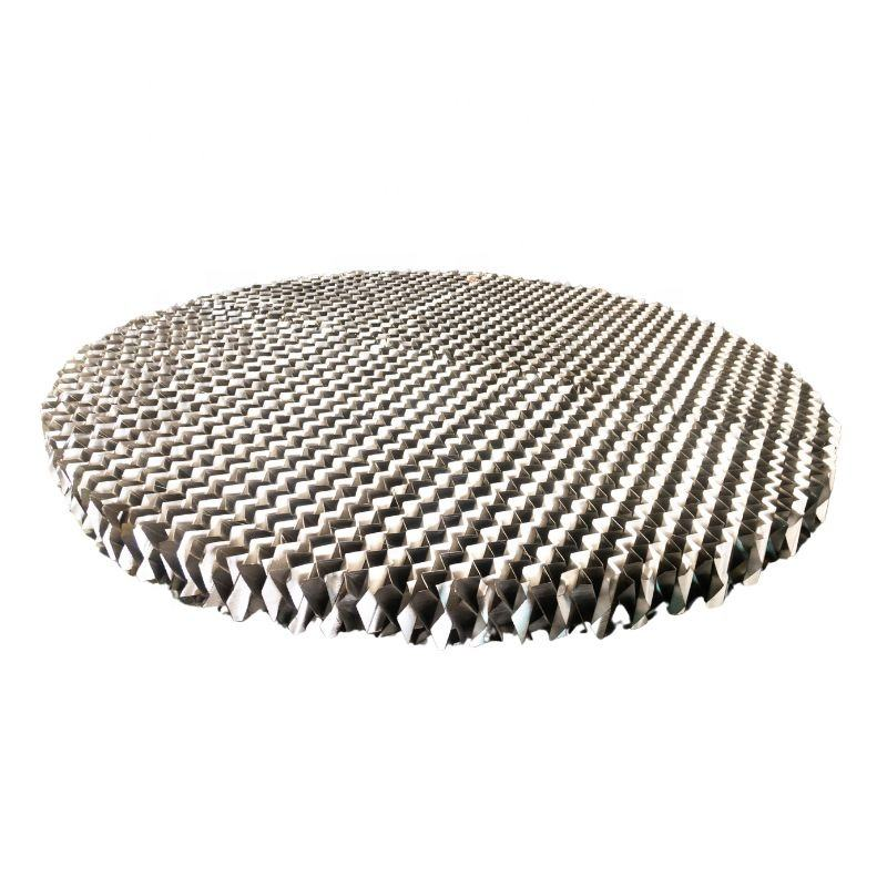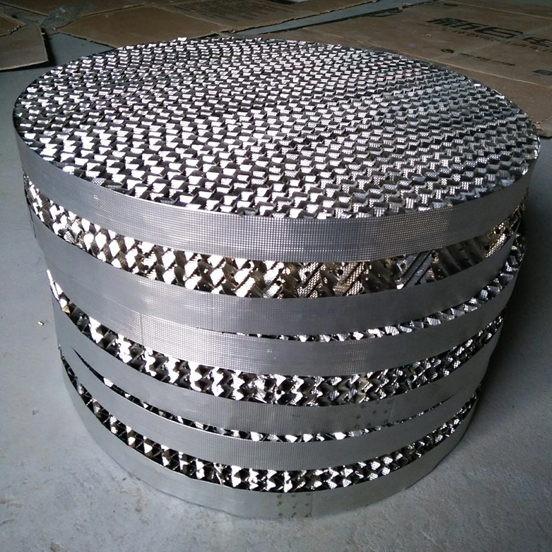 Perforated plate structured packing is made of various materials of metal plate. The plates are perforated to form a series of 5 mm holes and then corrugated. This design make the liquid evenly distributed. Additional, it can the improve the surface wettability of structured packing. The perforated plate structured packing has high strength and excellent corrosion and rust resistance performance to be used in the large diameter towers and high liquid loading applications.