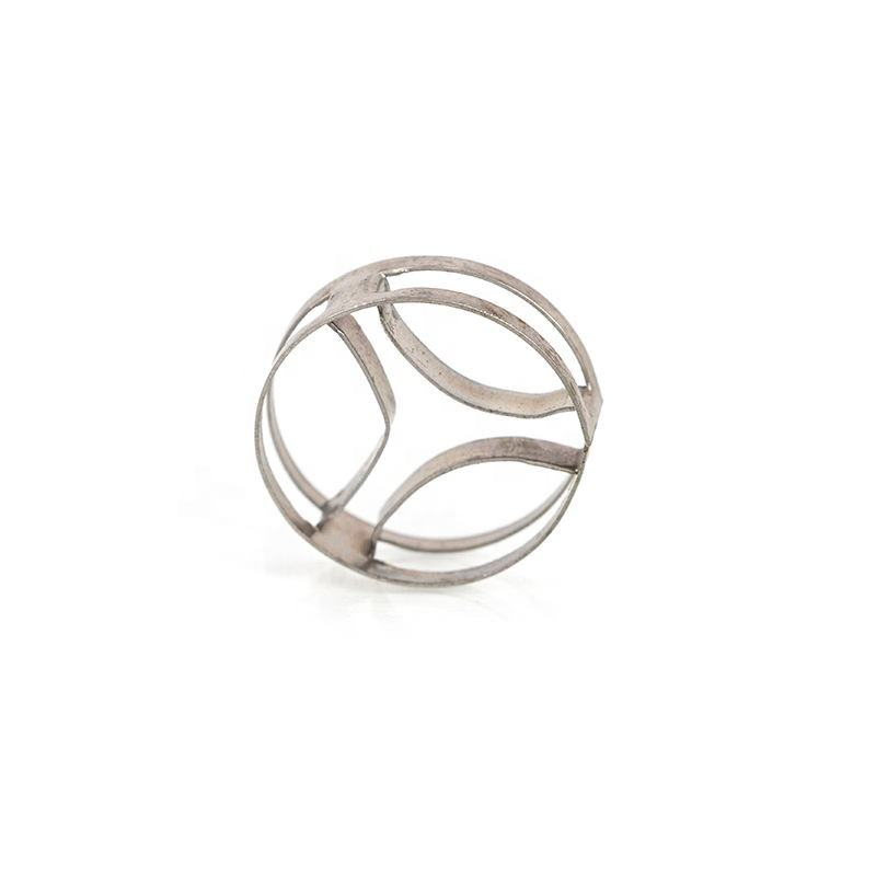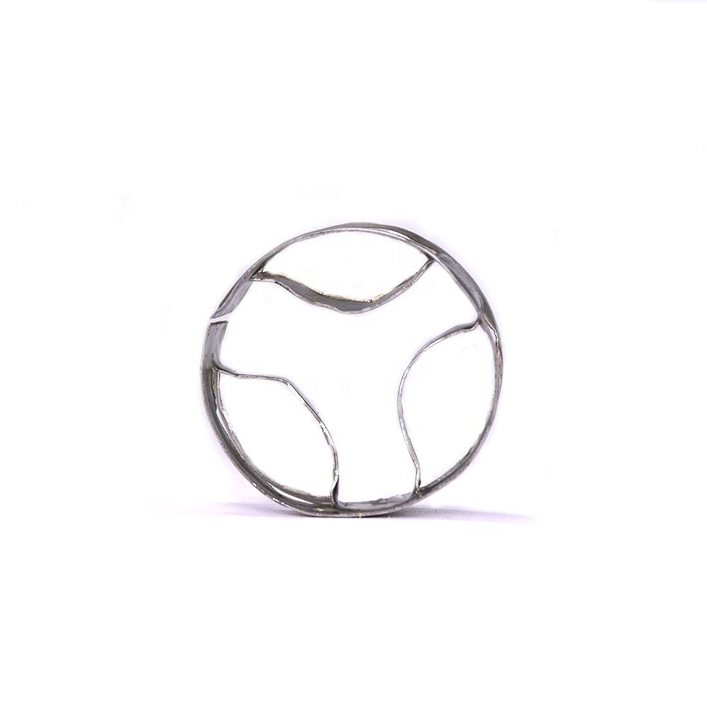 Metal flat ring(SMR or named Metal super mini ring ) random tower packing, is especially suitable for relative flow movement of liquid-liquid phase, and lessens agglomeration of dispersed droplet cluster. The mode of symmetrical inflexed arced fins will have good impact on the flowing homogeneity of liquid, promote the cyclic process of dispersion, convergence and redispersion of droplet cluster, effectively reduce the axial back-mixing of packing layer, and improve the mass transfer efficiency of liquid to liquid. Therefore, the packing will obtain excellent technological and economical effects in extraction process of liquid-liquid mass transfer.