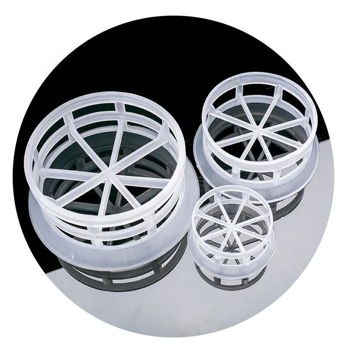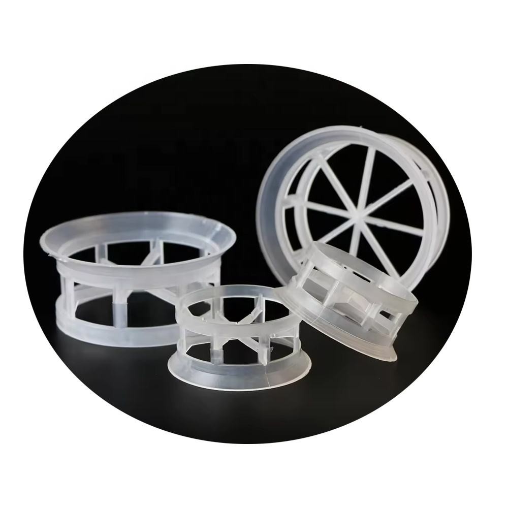 The aspect ratio of the cascade ring is only half of that of the pall ring, and a tapered flange is added at one end of the ring to reduce the resistance of gas passing through the bed And it increases the flux, and the strength of the packing is also high. Due to its structural characteristics, the packing layers are mostly in point contact with each other. This not only increases the porosity and reduces the pressure drop, but also forms a collection or dispersion point for the liquid to flow along the surface of the packing, promoting the renewal of the liquid film surface and the mixing of liquids, making the gas-liquid distribution uniform, increasing the gas-liquid contact surface, and improving the mass transfer efficiency