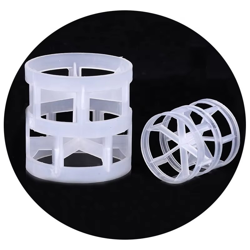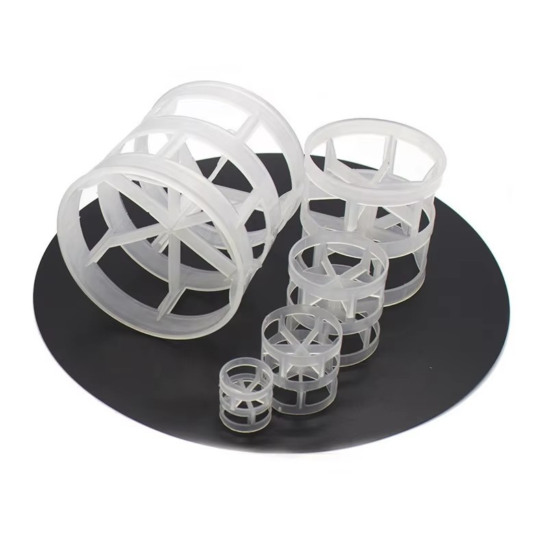 Polypropylene Pall ring filler has the advantages of large flux, small resistance, high separation efficiency and large operation flexibility, under the same pressure, the capacity can be more than 50% larger than the raschig ring. At the same capacity, the pressure reduction can be reduced by half, and the mass transfer efficiency can be increased by about 20%. Compared with lacy ring, this kind of packing has the characteristics of large production capacity, strong resistance and large operation elasticity. In general, the same pressure drop is 50%-100% larger than lacey ring, and the same pressure drop is 50%-70% smaller than Lacey ring. The tower height also has depressuration, and pall ring can be about 20%-40% larger than Lacey link packing volume. It is a small rectangular window with eight layers on the wall of the ordinary raschig ring. The small window blades overlap in the center of the ring and the upper and lower window positions overlap with each other. The main difference between it and lacy ring packing is that there are rectangular window holes on the side wall, and the window leaves of the window holes are bent into the ring center. Because of the opening of the ring wall, the distribution performance of gas and liquid is greatly improved compared with lacey ring, especially the inner surface area of the ring can be fully utilized.